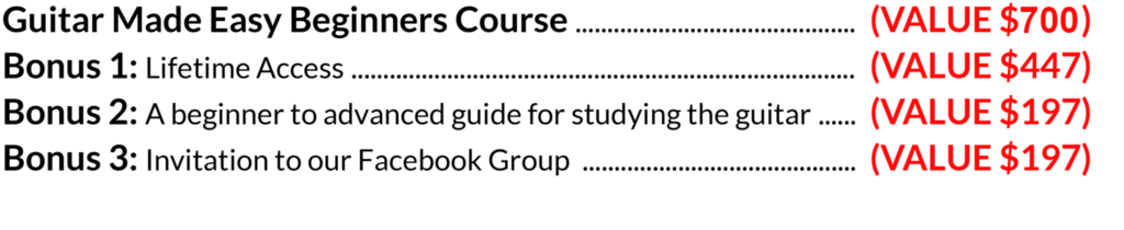 As an Online Guitar Course Pro member you get access to our private Facebook group. With a quickly growing community this is a place where you can be with like-minded people who will keep you motivated and on track. If you have a question, someone in the group can help you!