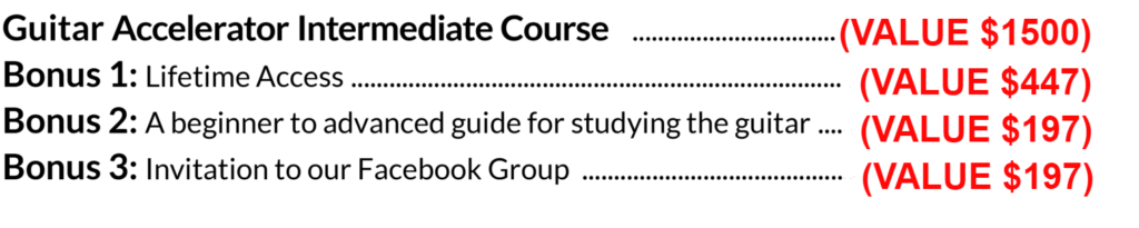 The Guitar Accelerator 15-module program delivers over 15hrs of high-quality instruction with Khan, valued at over $1500! You’ll gain all the essential tools to progress with confidence, knowing you’re learning from a world-class expert.